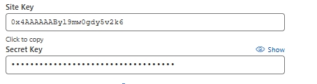 After creating the site, you'll be provided with two keys: