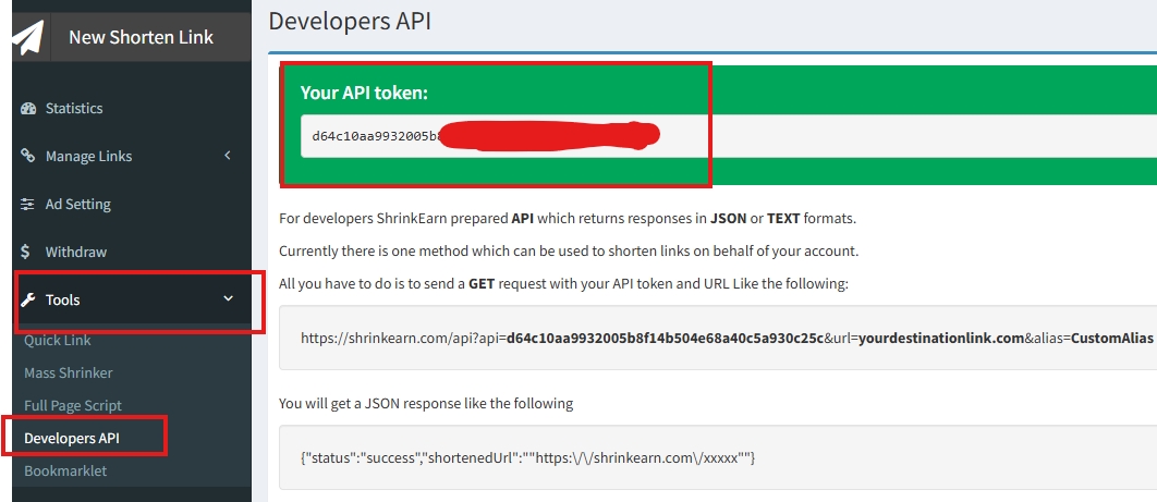 Open the navigation bar and click on "Tools" and then click on "Developers API".